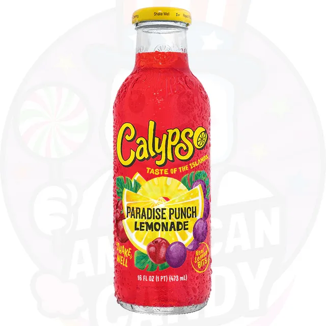 Calypso Paradise Punch Lemonade , como todas las bebidas Calypso, se elabora con limonada. En el Calypso Paradise Punch Lemonade es una limonada limonada . Y ese jugo cítrico delicioso y ácido viene con un sabor fuerte a cereza, naranja, piña y uva . Esta mezcla le da a Calypso Paradise Punch Lemonade ricos sabores que son a la vez suaves y dulces, pero también delicadamente agrios. Con sus botellas de cristal , las bebidas Calypso reducen los residuos plásticos y además, incluso puedes reutilizarlas una vez que hayas terminado de beber tu Limonada Calypso Paradise Punch. Puedes reutilizar la botella, ya sea como botella de agua, o para preparar cócteles cuando vengan amigos a tomar el aperitivo a tu casa. Este formato de 473 ml será perfecto para guardar en tu bolso y disfrutar de tu limonada Calypso Paradise Punch en cualquier lugar y momento del día.