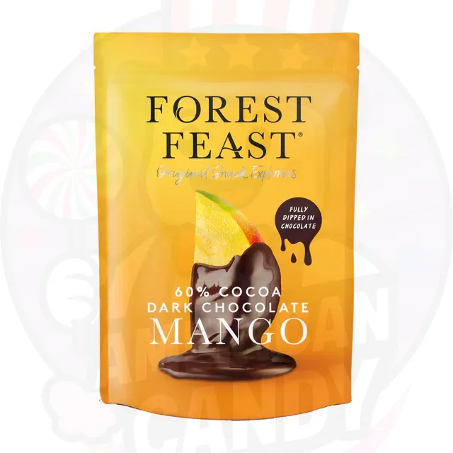 Las Forest Feast Dark Chocolate Mango Strips son una aventura tropical en cada mordisco: jugosas tiras de mango natural bañadas en rico chocolate negro ????????.