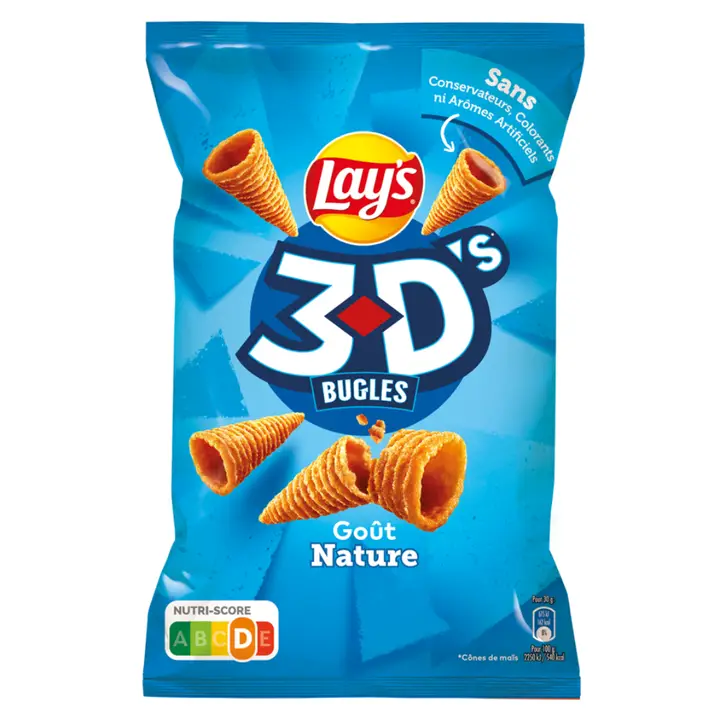 Los Lay’s 3D Bugles sabor Natural son un snack único por su forma cónica tridimensional y su textura súper crujiente. Con un sabor natural suave y equilibrado, son perfectos para quienes prefieren un aperitivo sencillo pero delicioso que acompaña cualquier momento de picoteo.
