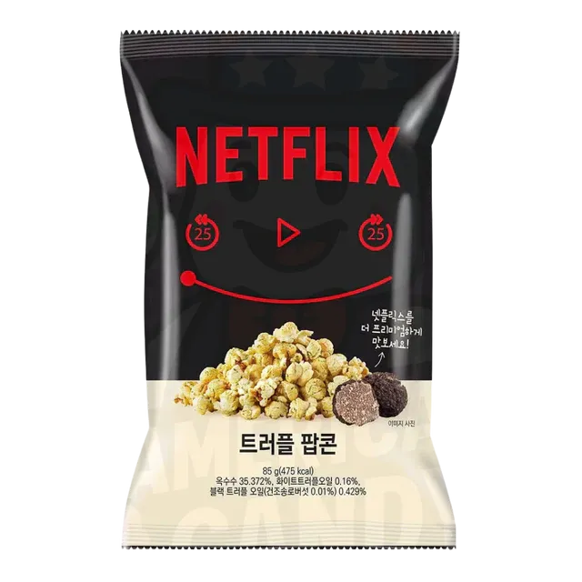 El Netflix Truffle Popcorn 85g eleva la experiencia del cine en casa con unas palomitas gourmet de maíz crujiente infusionadas con el inconfundible sabor de la trufa. Un snack exclusivo que combina lo mejor de las clásicas palomitas con un toque sofisticado y aromático, ideal para acompañar tus maratones de series o películas.